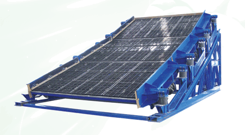 由于受承載極限轉(zhuǎn)速的限制及篩框結(jié)構(gòu)強(qiáng)度的影響,目前國內(nèi)的傳統(tǒng)振動篩不易做到高頻化、大型化。等厚分段篩分為多段篩分單元,各篩分單元分別獨(dú)立振動,使得各篩分單元均可實(shí)現(xiàn)較大的振動強(qiáng)度,大振動強(qiáng)度可大幅度提高振動篩的生產(chǎn)率和篩分效率,同時使篩子實(shí)現(xiàn)了大型化。各篩分單元的獨(dú)立振動,對機(jī)架的振動得以分散,可降低整機(jī)的振動強(qiáng)度,由于等厚分段篩在設(shè)計原理上所具有的優(yōu)點(diǎn),使得等厚分段篩具有使用壽命長,噪聲低,對廠房影響小的特點(diǎn),是一種環(huán)保型篩分設(shè)備。