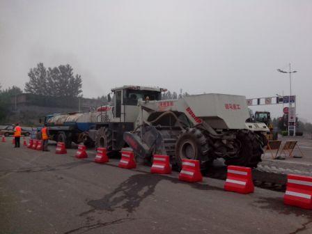 國(guó)道G108臨汾段今年開始冷再生大修施工,該路段為公路干線,路基及路面強(qiáng)度很高,其中部分路段,比如靠近收費(fèi)站的路段,經(jīng)過(guò)多次維修,采用了改性瀝青鋪設(shè)面層,路面強(qiáng)度很高,即使是進(jìn)口機(jī)械施工也不輕松,導(dǎo)致機(jī)器工作速度慢,刀具磨損損耗量明顯增大等。該路段共有六個(gè)標(biāo)段,施工的主要設(shè)備冷再生機(jī)以進(jìn)口品牌為主。由于工期緊張,先后有兩個(gè)標(biāo)段調(diào)用了我公司生產(chǎn)的600馬力WR2300E,WR2300L冷再生機(jī)。我公司冷再生機(jī)面對(duì)如此高強(qiáng)度路面冷再生,機(jī)器展示了國(guó)產(chǎn)機(jī)械的優(yōu)異性能,通過(guò)了考驗(yàn),贏得了施工方的認(rèn)可。參于施工的兩臺(tái)600馬力冷再生機(jī),均安裝了我公司自行生產(chǎn)的可拆卸刀庫(kù)重型轉(zhuǎn)子,很好地體現(xiàn)了可拆卸刀庫(kù)重型轉(zhuǎn)子在高強(qiáng)度冷再生施工中的適應(yīng)性。